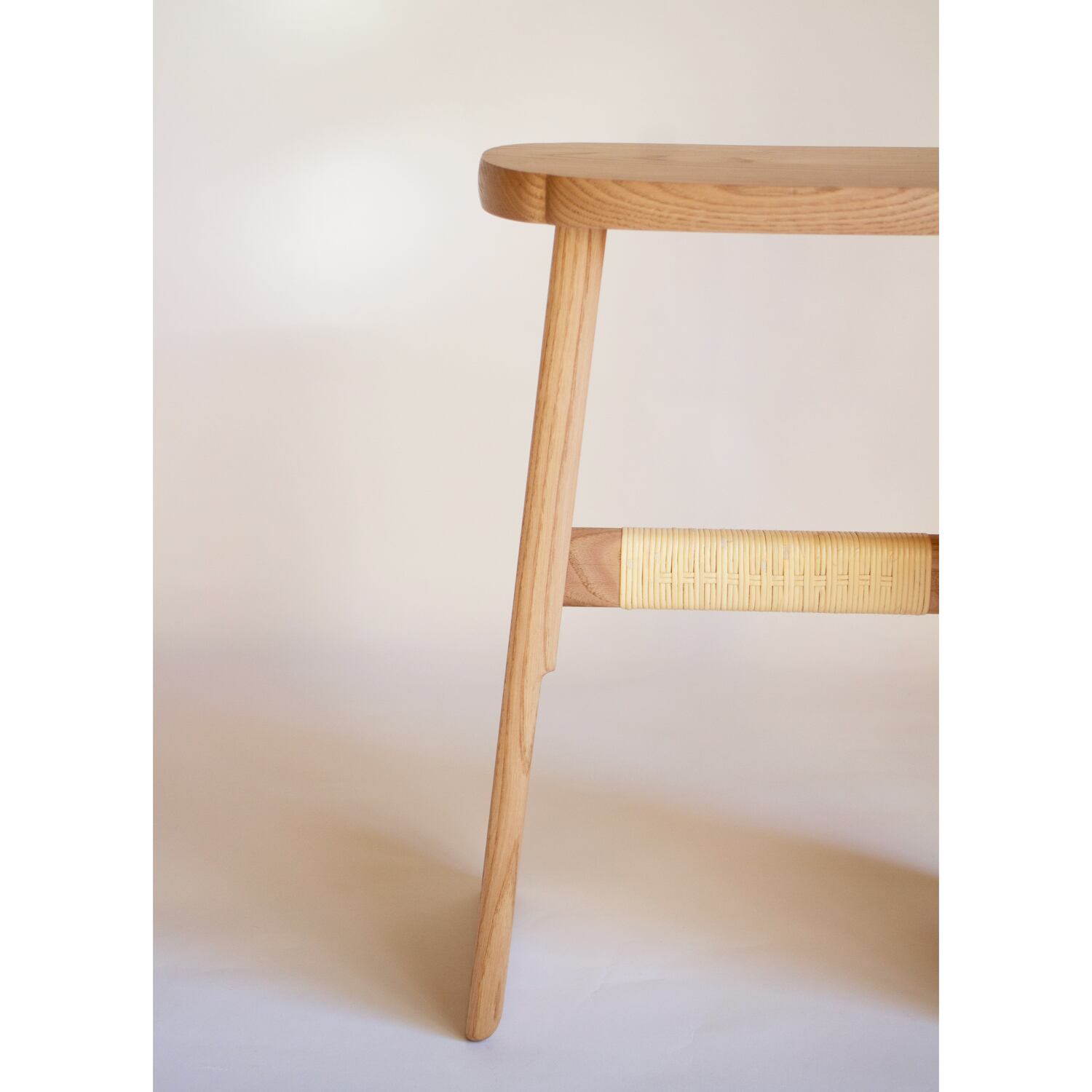 耐久性の高い栗材と軽やかな籐を組み合わせ、落ち着いた佇まいと温もりを感じさせる腰掛です。座面を緩やかに削り身体にそっと添うような座り心地です。玄関先のちょっとした腰掛として、リビングのアクセントとして、また客間や和室にも自然と調和します。上品で使い勝手の良い一脚が、暮らしに落ち着きと温もりを添えます。