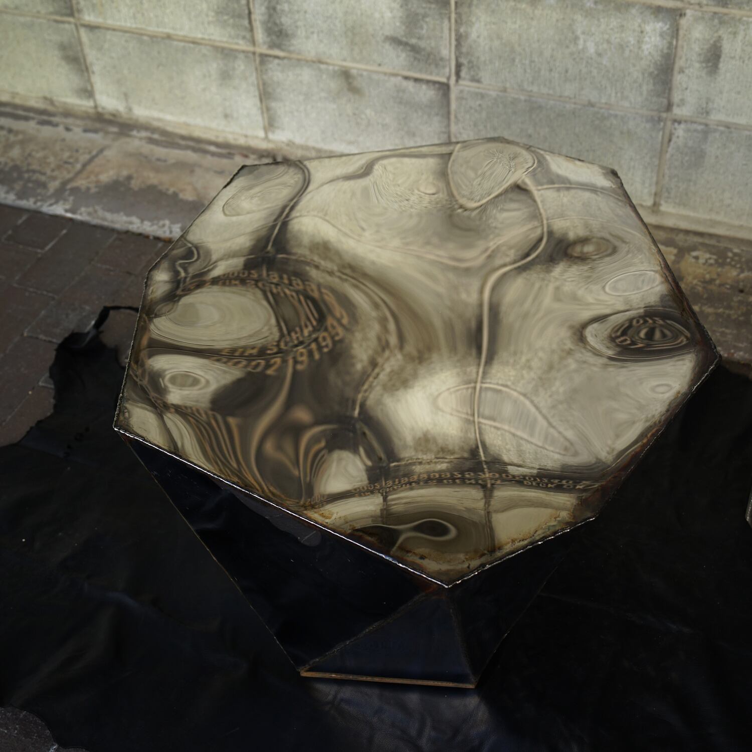 高級素材であるステンレス鏡面材を、あたかも朽ち果てたかのような表情で表現しています。