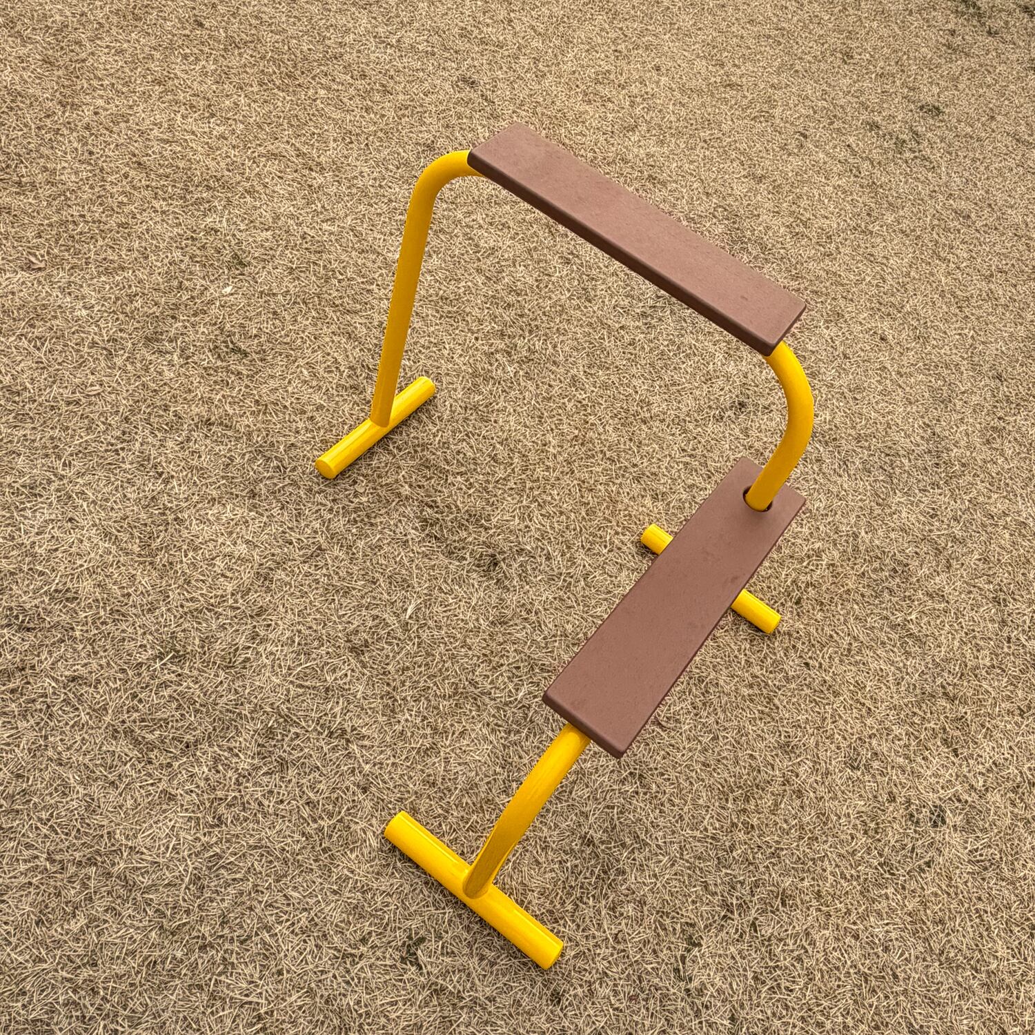2枚の板材をコンパスのように開閉可能な、ベンチ&テーブル。