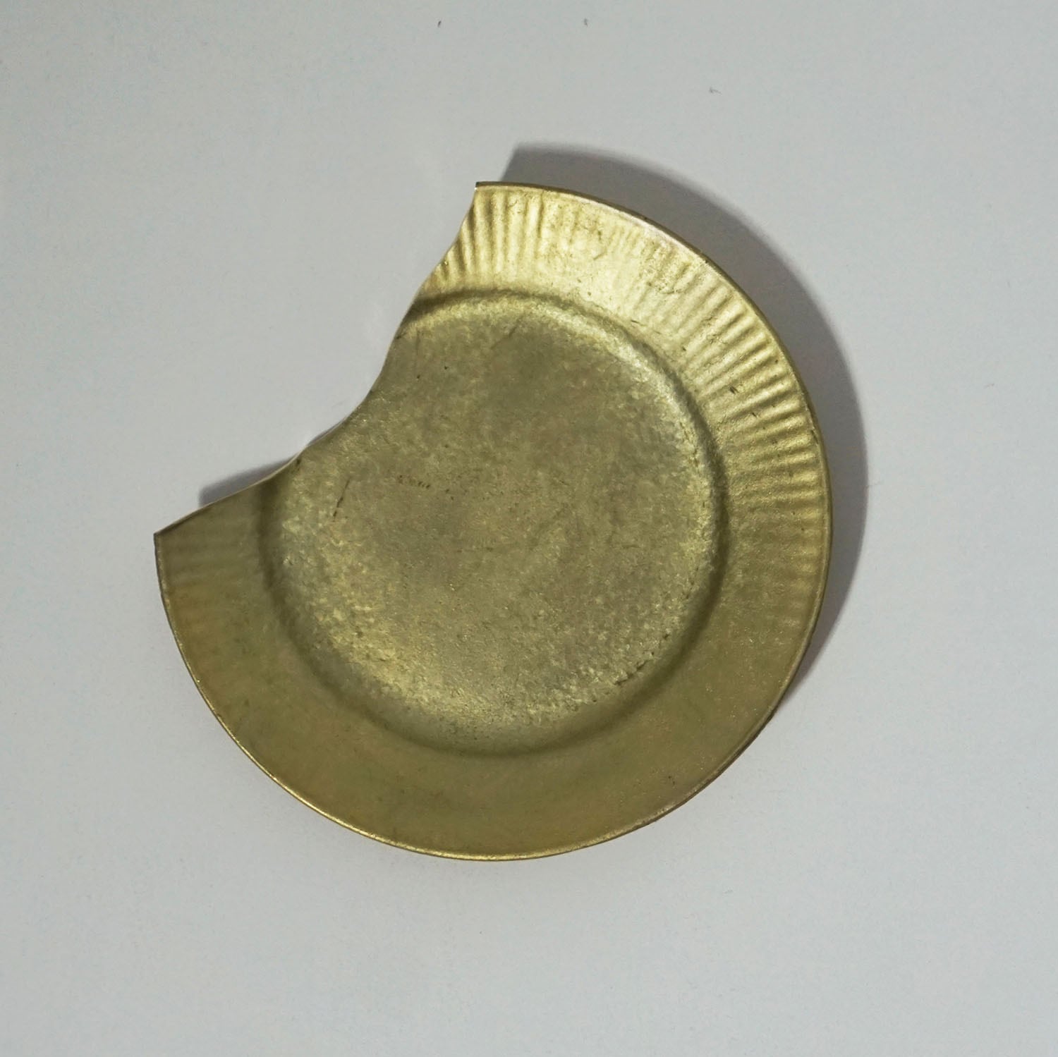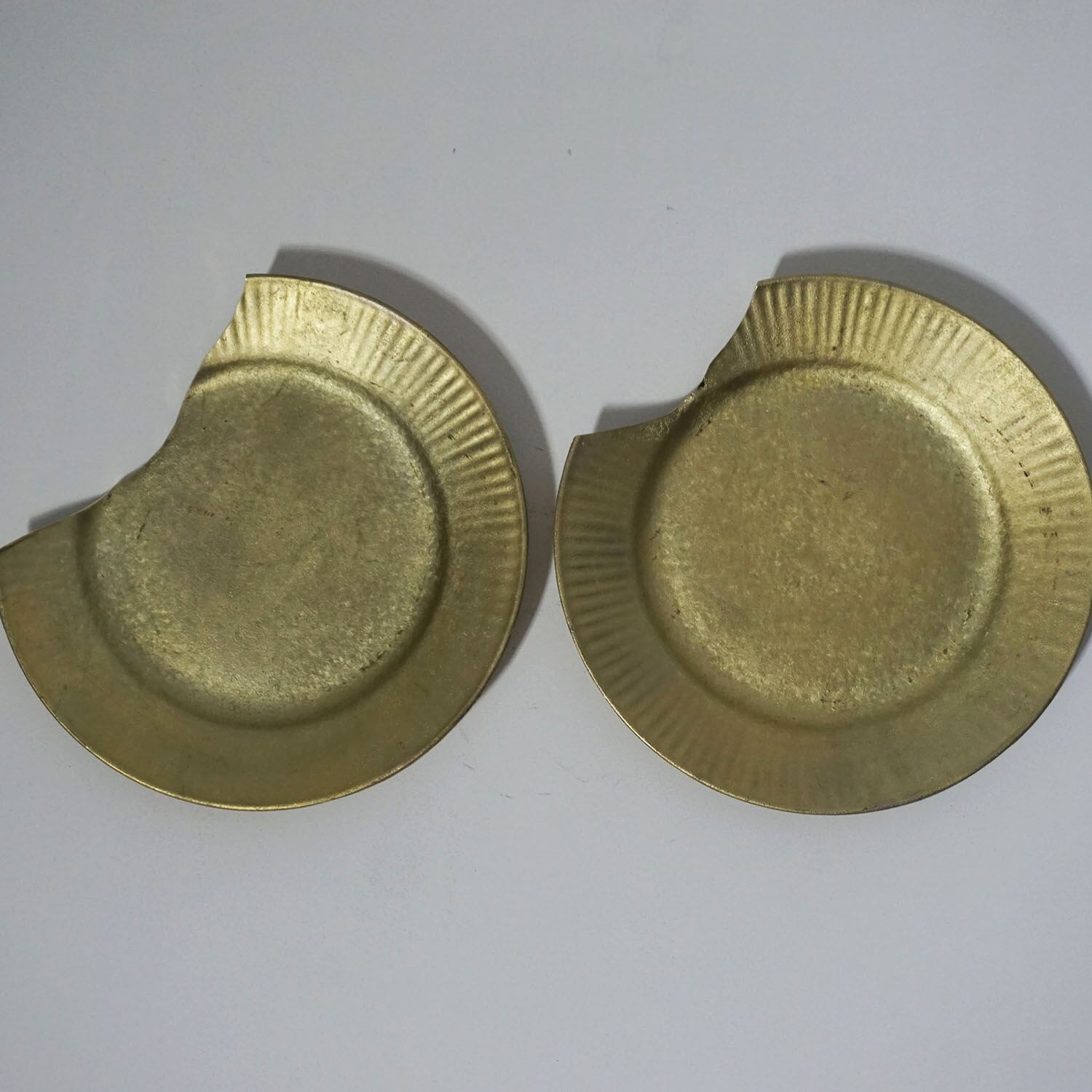時代を経たヴィンテージの皿(グラス)が破損した断片を起点に、その輪郭と破断面を真鍮の鋳物としてトレース保存したオブジェシリーズ。真鍮の重みと艶は、失われた軽やかさや透明性の代わりに、湿度を帯びた妖艶さと静かな緊張を作品に付与する。