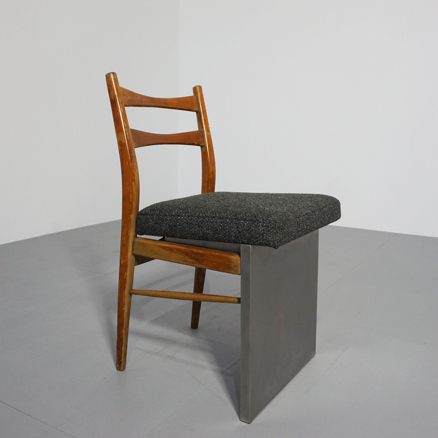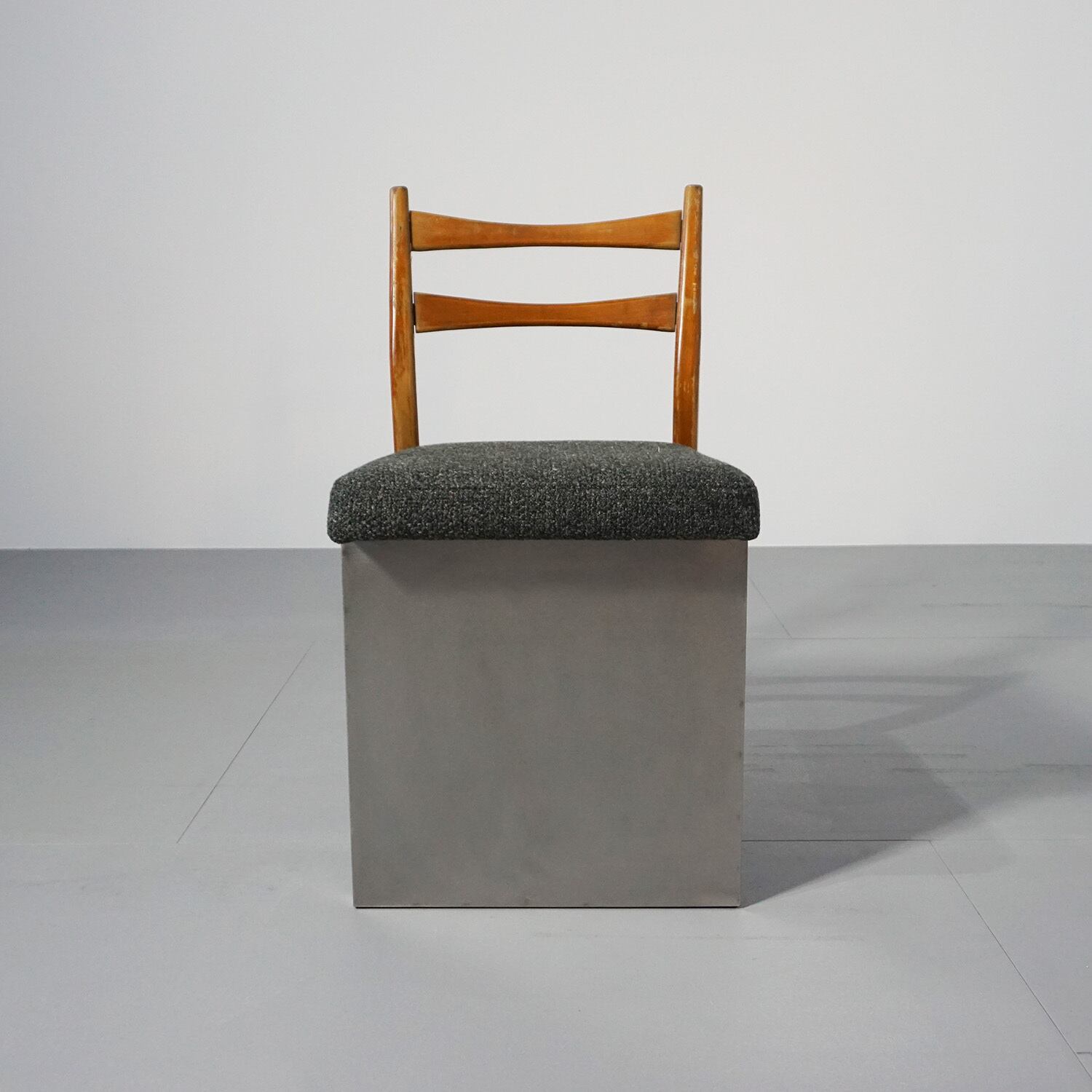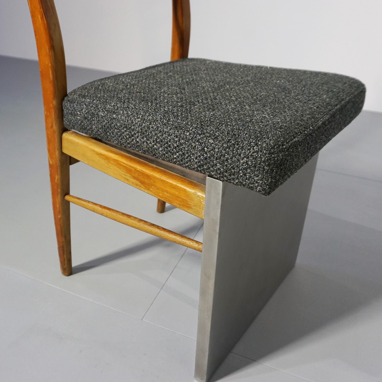 1860年代デンマーク製のアンティークチェアを基体に、破損した構造部分をステンレスによって再構成し、一脚の椅子として完成させました。